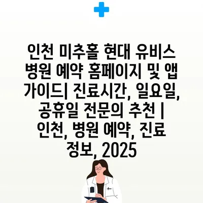 인천 미추홀 현대 유비스 병원 예약 홈페이지 및 앱 설명서| 진료시간, 일요일, 공휴일 전연락 추천 | 인천, 병원 예약, 진료 정보, 2025 에 대해 자주 묻는 질문 TOP 5