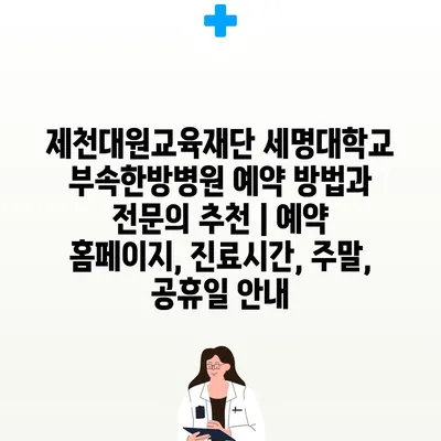 제천대원교육재단 세명대학교 부속한방병원 예약 방법과 전연락 추천 | 예약 홈페이지, 진료시간, 주말, 공휴일 공지 에 대해 자주 묻는 질문 TOP 5