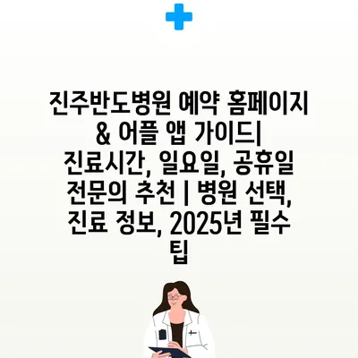 진주반도병원 예약 홈페이지 & 어플 앱 설명서| 진료시간, 일요일, 공휴일 전연락 추천 | 병원 선택, 진료 정보, 2025년 필수 팁 에 대해 자주 묻는 질문 TOP 5