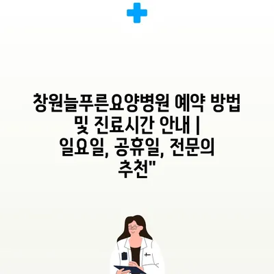 창원늘푸른요양병원 예약 방법 및 진료시간 안내 | 일요일, 공휴일, 전문의 추천”