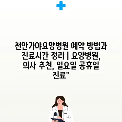 ✅ 천안가야요양병원의 진료시간과 예약 방법을 간편하게 알아보세요.