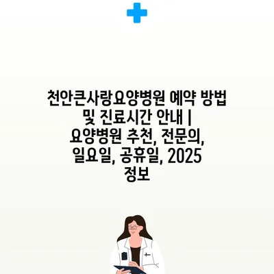 천안큰사랑요양병원 예약 방법 및 진료시간 안내 | 요양병원 추천, 전문의, 일요일, 공휴일, 2025 정보