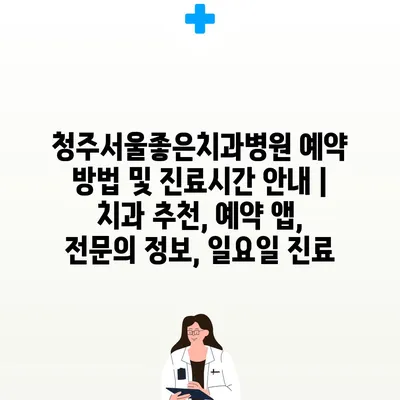 ✅ 청주서울좋은치과병원의 진료시간과 예약 방법을 자세히 알아보세요.