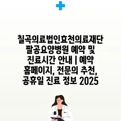 칠곡의료법인효천의료재단 팔공요양병원 예약 및 진료시간 공지 | 예약 홈페이지, 전연락 추천, 공휴일 진료 정보 2025