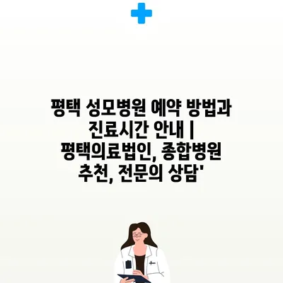 평택 성모병원 예약 방법과 진료시간 공지 | 평택의료법인, 종합병원 추천, 전연락 상담’에 대해 자주 묻는 질문 TOP 5