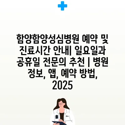함양함양성심병원 예약 및 진료시간 공지| 일요일과 공휴일 전연락 추천 | 병원 정보, 앱, 예약 방법, 2025