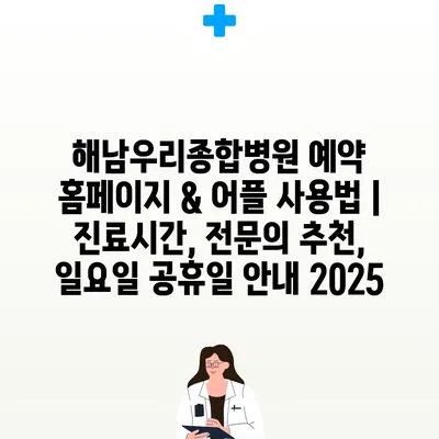 ✅ 해남우리종합병원 예약 방법과 꿀팁을 알아보세요.