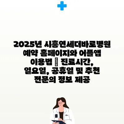 ✅ 시흥연세더바로병원의 진료시간과 예약 방법을 자세히 알아보세요.