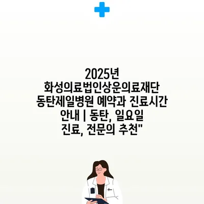 2025년 화성의료법인상운의료재단 동탄제일병원 예약과 진료시간 안내 | 동탄, 일요일 진료, 전문의 추천”