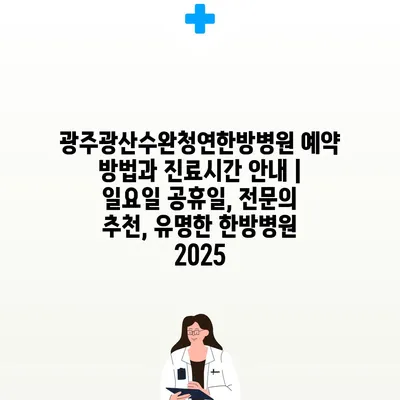 광주광산수완청연한방병원 예약 방법과 진료시간 안내 | 일요일 공휴일, 전문의 추천, 유명한 한방병원 2025
