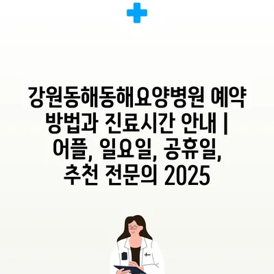 강원동해동해요양병원 예약 방법과 진료시간 안내 | 어플, 일요일, 공휴일, 추천 전문의 2025