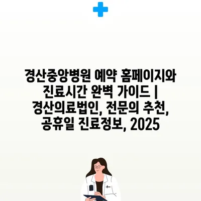 경산중앙병원 예약 홈페이지와 진료시간 완벽 설명서 | 경산의료법인, 전연락 추천, 공휴일 진료정보, 2025 에 대해 자주 묻는 질문 TOP 5
