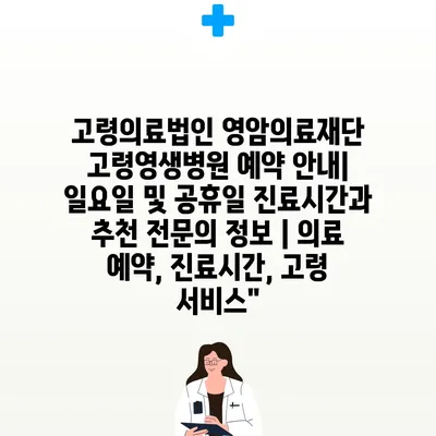 고령의료법인 영암의료재단 고령영생병원 예약 공지| 일요일 및 공휴일 진료시간과 추천 전연락 정보 | 의료 예약, 진료시간, 고령 서비스