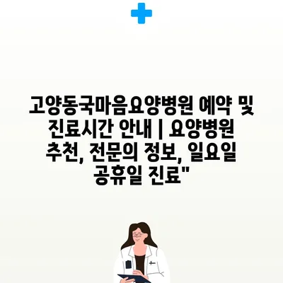 고양동국마음요양병원의 예약과 진료시간을 지금 바로 알아보세요!