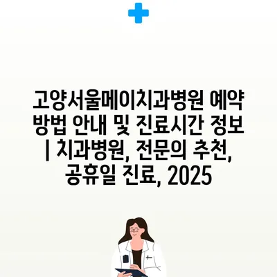 고양서울메이치과병원 예약 방법 공지 및 진료시간 정보 | 치과병원, 전연락 추천, 공휴일 진료, 2025 에 대해 자주 묻는 질문 TOP 5