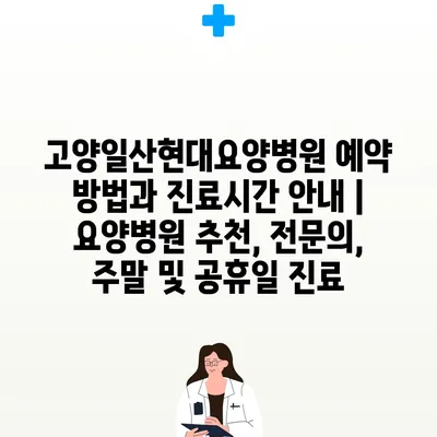 ✅ 고양일산현대요양병원의 예약 방법을 상세히 알아보세요.