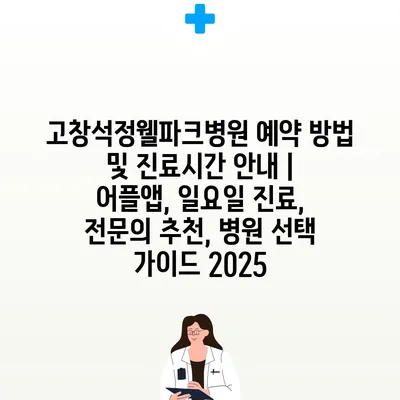 ✅ 고창석정웰파크병원 예약 방법을 자세히 알아보세요!