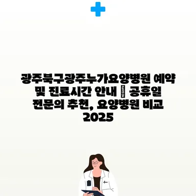 ✅ 광주북구의 요양병원 예약과 진료시간을 빠르게 알아보세요!