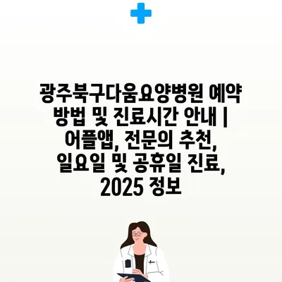 광주북구다움요양병원 예약 방법 및 진료시간 안내 | 어플앱, 전문의 추천, 일요일 및 공휴일 진료, 2025 정보