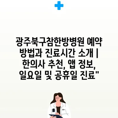 광주북구참한방병원 예약 방법과 진료시간 소개 | 한의사 추천, 앱 정보, 일요일 및 공휴일 진료”