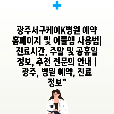 광주서구케이K병원 예약 홈페이지 및 어플앱 사용법| 진료시간, 주말 및 공휴일 정보, 추천 전연락 공지 | 광주, 병원 예약, 진료 정보에 대해 자주 묻는 질문 TOP 5