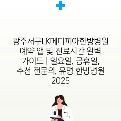 광주서구LK메디피아한방병원 예약 앱 및 진료시간 완벽 설명서 | 일요일, 공휴일, 추천 전연락, 유명 한방병원 2025 에 대해 자주 묻는 질문 TOP 5