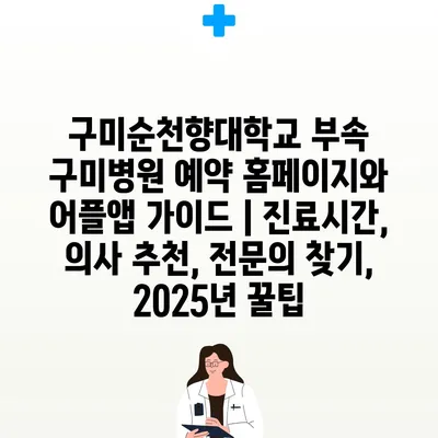 구미순천향대학교 부속 구미병원 예약 홈페이지와 어플앱 가이드 | 진료시간, 의사 추천, 전문의 찾기, 2025년 꿀팁
