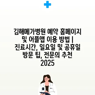김해메가병원 예약 홈페이지 및 어플앱 이용 방법 | 진료시간, 일요일 및 공휴일 방문 팁, 전연락 추천 2025 에 대해 자주 묻는 질문 TOP 5