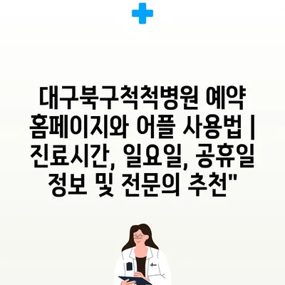 대구북구척척병원 예약 홈페이지와 어플 사용법 | 진료시간, 일요일, 공휴일 정보 및 전문의 추천”