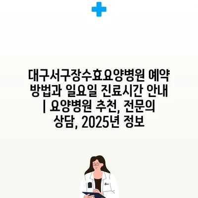 대구서구장수효요양병원 예약 방법과 일요일 진료시간 공지 | 요양병원 추천, 전연락 상담, 2025년 정보 에 대해 자주 묻는 질문 TOP 5
