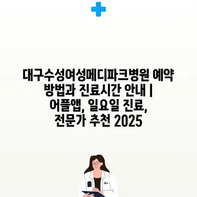 대구수성여성메디파크병원 예약 방법과 진료시간 안내 | 어플앱, 일요일 진료, 전문가 추천 2025