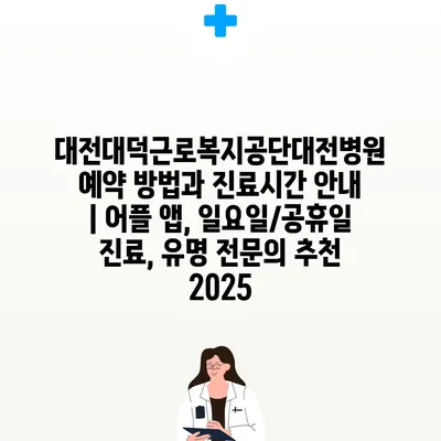 대전대덕근로복지공단대전병원 예약 방법과 진료시간 공지 | 어플 앱, 일요일/공휴일 진료, 유명 전연락 추천 2025 에 대해 자주 묻는 질문 TOP 5