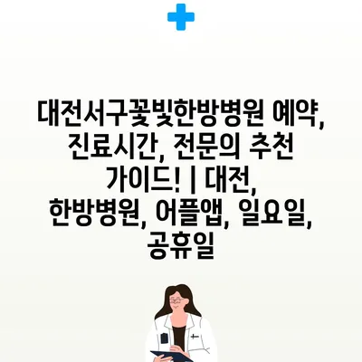 ✅ 대전서구꽃빛한방병원의 예약 방법과 팁을 한눈에 확인하세요!