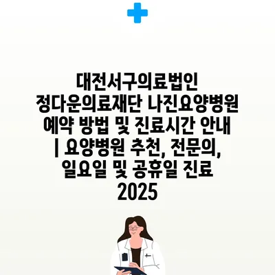 대전서구의료법인 정다운의료재단 나진요양병원 예약 방법 및 진료시간 안내 | 요양병원 추천, 전문의, 일요일 및 공휴일 진료 2025