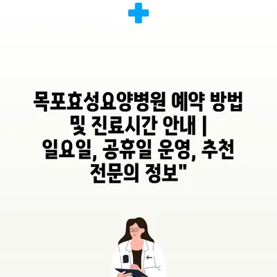 ✅ 목포효성요양병원의 예약 방법과 진료시간을 바로 확인하세요!
