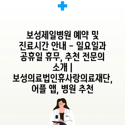 보성제일병원 예약 및 진료시간 안내 – 일요일과 공휴일 휴무, 추천 전문의 소개 | 보성의료법인휴사랑의료재단, 어플 앱, 병원 추천