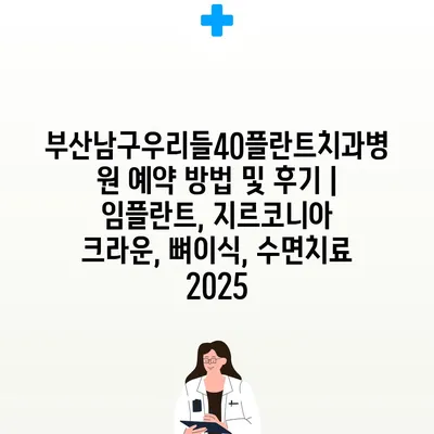 부산남구우리들40플란트치과병원 예약 방법 및 후기 | 임플란트, 지르코니아 크라운, 뼈이식, 수면치료 2025