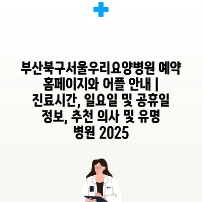 부산북구서울우리요양병원 예약 홈페이지와 어플 공지 | 진료시간, 일요일 및 공휴일 정보, 추천 의사 및 유명 병원 2025에 대해 소개합니다.