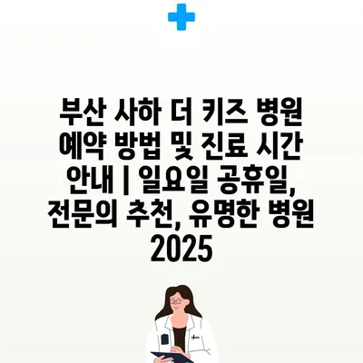 부산 사하 더 키즈 병원 예약 방법 및 진료 시간 공지 | 일요일 공휴일, 전연락 추천, 유명한 병원 2025