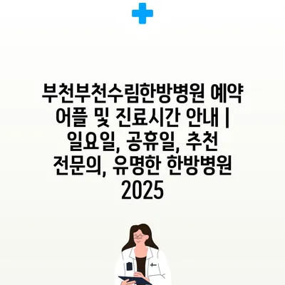 부천부천수림한방병원 예약 어플 및 진료시간 안내 | 일요일, 공휴일, 추천 전문의, 유명한 한방병원 2025