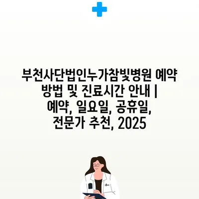 부천사단법인누가참빛병원 예약 방법 및 진료시간 안내 | 예약, 일요일, 공휴일, 전문가 추천, 2025