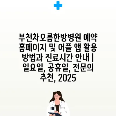 부천차오름한방병원 예약 홈페이지 및 어플 앱 활용 방법과 진료시간 안내 | 일요일, 공휴일, 전문의 추천, 2025
