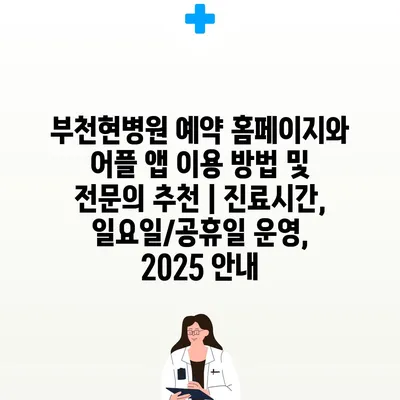 부천현병원 예약 홈페이지와 어플 앱 이용 방법 및 전연락 추천 | 진료시간, 일요일/공휴일 운영, 2025 공지