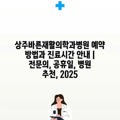 상주바른재활의학과병원 예약 방법과 진료시간 공지 | 전연락, 공휴일, 병원 추천, 2025 에 대해 자주 묻는 질문 TOP 5