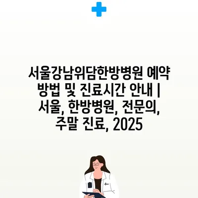 서울강남위담한방병원 예약 방법 및 진료시간 공지 | 서울, 한방병원, 전연락, 주말 진료, 2025 에 대해 자주 묻는 질문 TOP 5