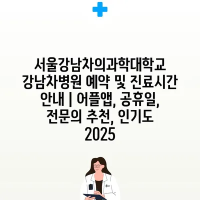 ✅ 서울 강남차병원에서 전문의 예약 방법과 진료시간을 알아보세요.