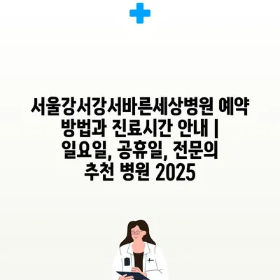 서울강서강서바른세상병원 예약 방법과 진료시간 공지 | 일요일, 공휴일, 전연락 추천 병원 2025에 대해 자주 묻는 질문 TOP 5