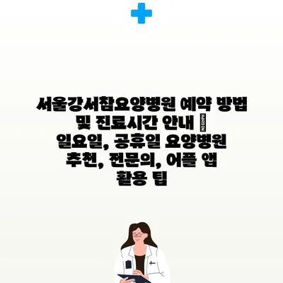 서울강서참요양병원 예약 방법 및 진료시간 공지 | 일요일, 공휴일 요양병원 추천, 전연락, 어플 앱 활용 팁 에 대해 자주 묻는 질문 TOP 5