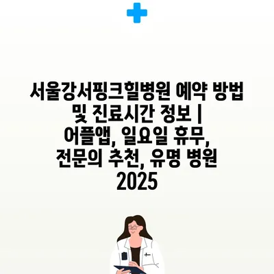 서울강서핑크힐병원 예약 방법 및 진료시간 정보 | 어플앱, 일요일 휴무, 전연락 추천, 유명 병원 2025 에 대해 자주 묻는 질문 TOP 5