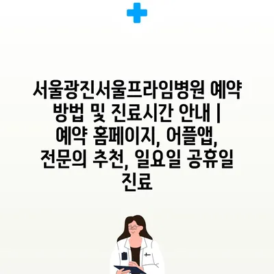 서울광진서울프라임병원 예약 방법 및 진료시간 안내 | 예약 홈페이지, 어플앱, 전문의 추천, 일요일 공휴일 진료